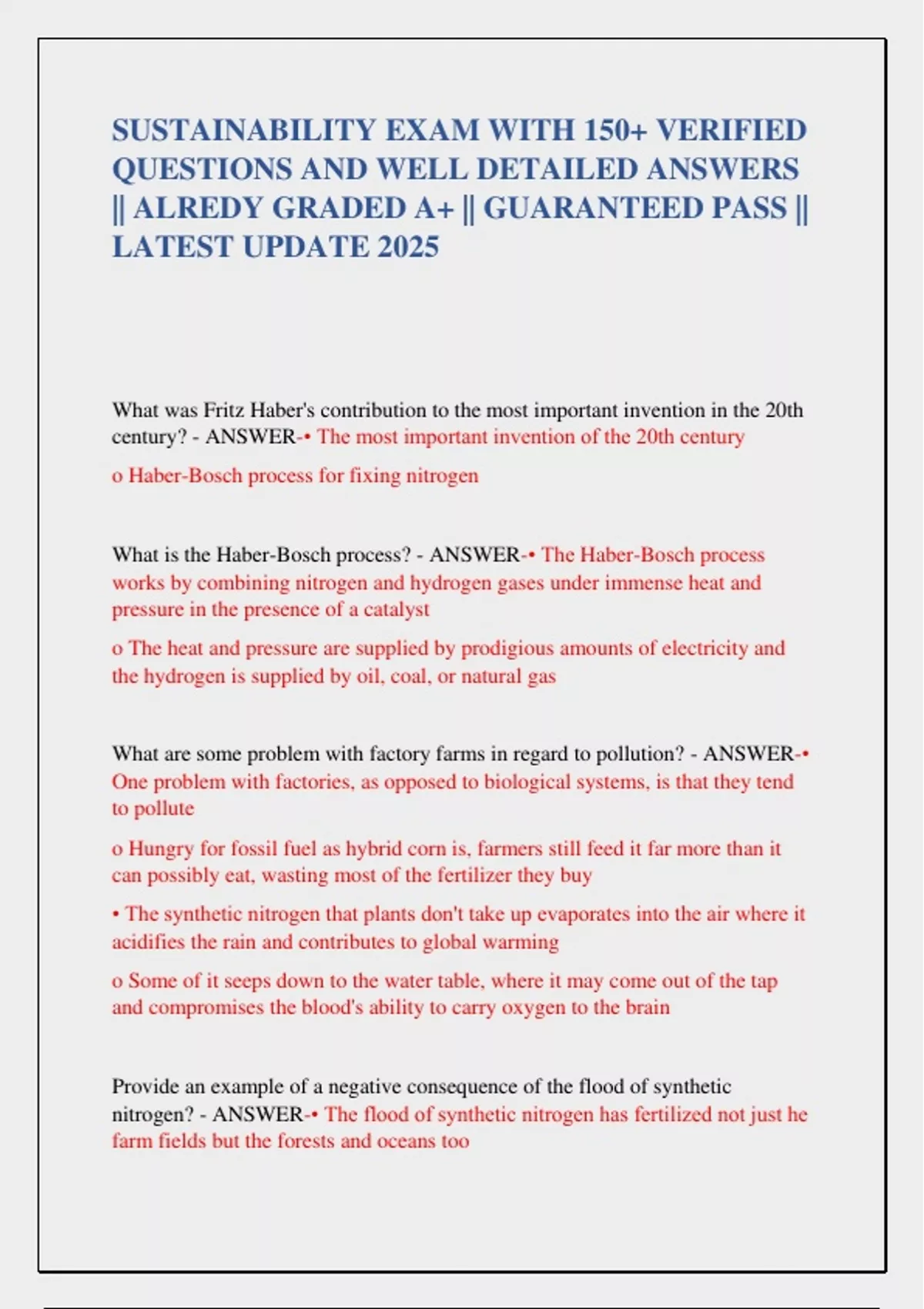 What is the Haber-Bosch process? - ANSWER-• The Haber-Bosch process