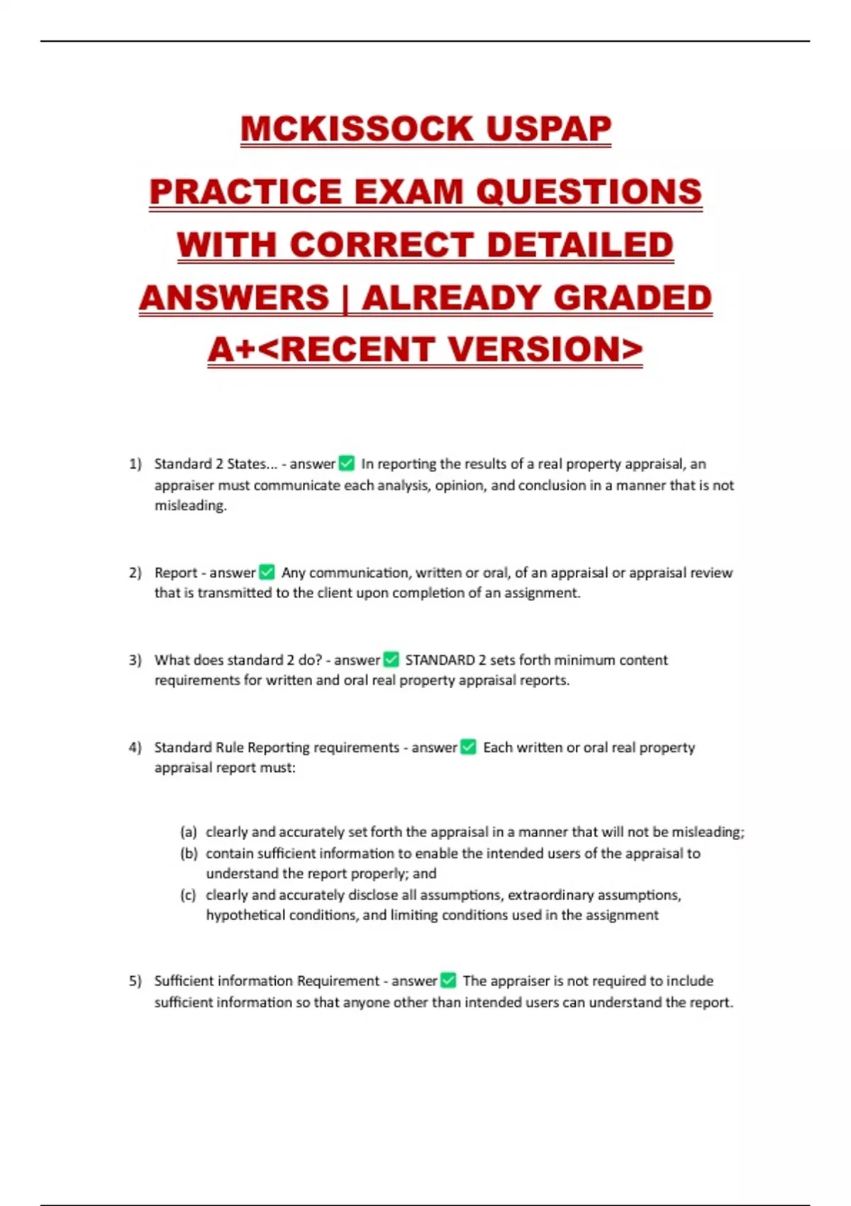 1) Standard 2 States... - answer In reporting the results of a real property appraisal, an