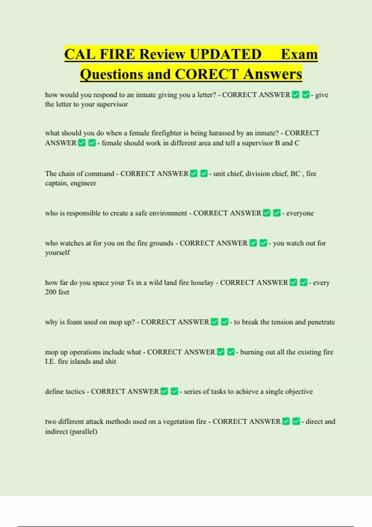 CAL FIRE Review UPDATED Exam Questions and CORECT Answers