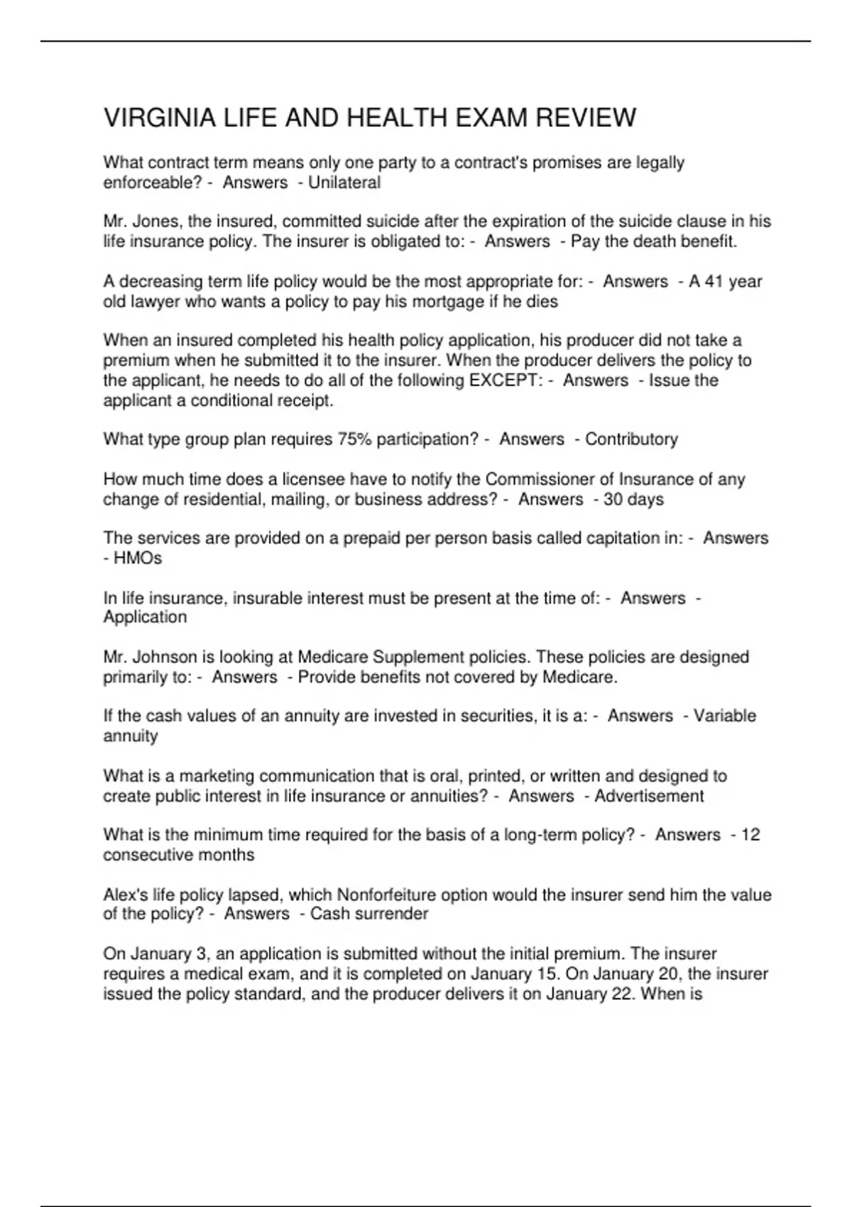 VIRGINIA LIFE AND HEALTH EXAM REVIEW