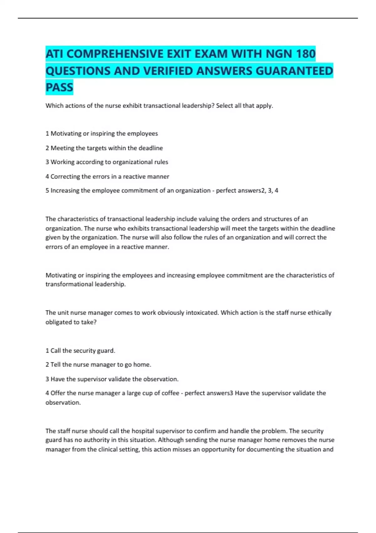 ATI COMPREHENSIVE EXIT EXAM WITH NGN 180