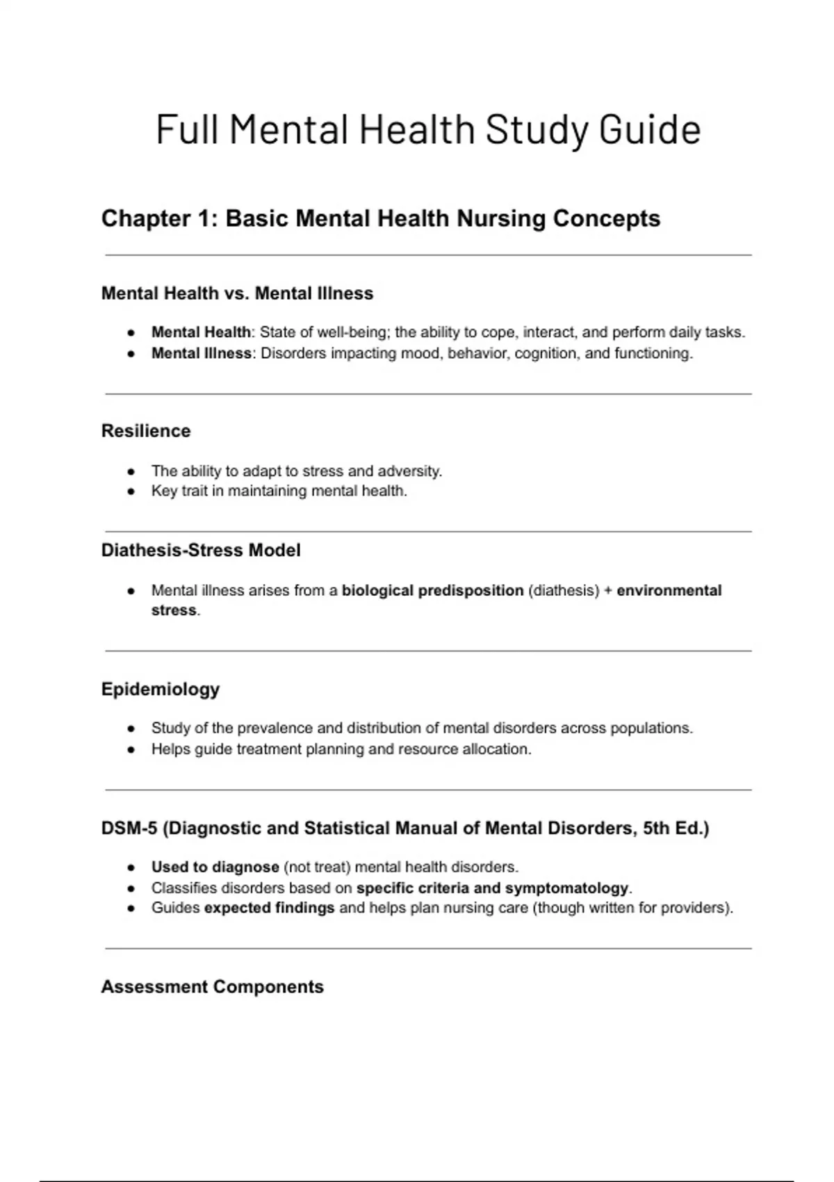 FULL COURSE STUDY GUIDE - MENTAL HEALTH ATI BASED