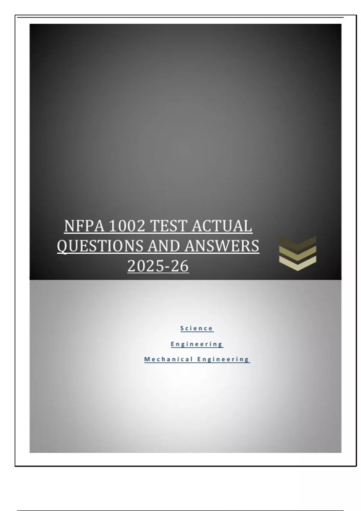 NFPA 1002 TEST ACTUAL QUESTIONS AND ANSWERS 2025-26 What is the primary function of the fire department pumper? A. Transport water to areas beyond a water system. B. Suppress flammable liquid fires and spill vapours at airports. C. Provide water at an adequate pressure for fire streams. D. Possess the ability to pump and roll. - ANS-C. Provide water at an adequate pressure for fire streams. Which legislation allows for the establishment of a fire service in Ontario? A. Highway Traffic Act (HTA) B. National Fire Protection Association (NFPA) C. Fire Protection and Prevention Act (FPPA) D. Occupational Health and Safety Act (OHSA) - ANS-C. Fire Protection and Prevention Act (FPPA) How does NFPA 1500 increase safety for fire apparatus design? A. Allows seat belts to be optional in an enclosed cab. B. States that firefighters must wear helmets in an enclosed cab. C. Requires all members be seated in an enclosed cab. D. Mandates that SCBA must be donned in an enclosed cab. - ANS-C. Requires all members be seated in an enclosed cab. If downed power lines block access to the water supply, which agency is responsible for mitigating the hazard? A. Ontario One Call.
