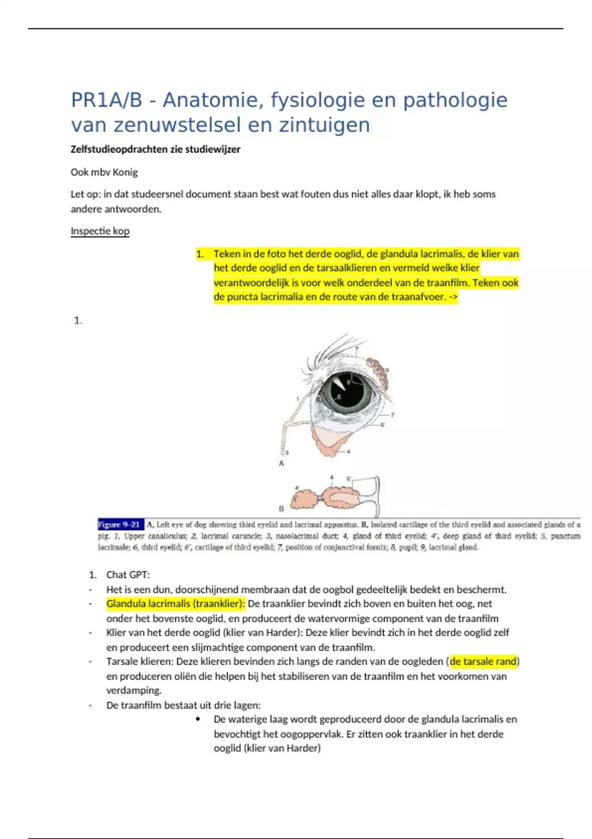 1. Teken in de foto het derde ooglid, de glandula lacrimalis, de klier van
