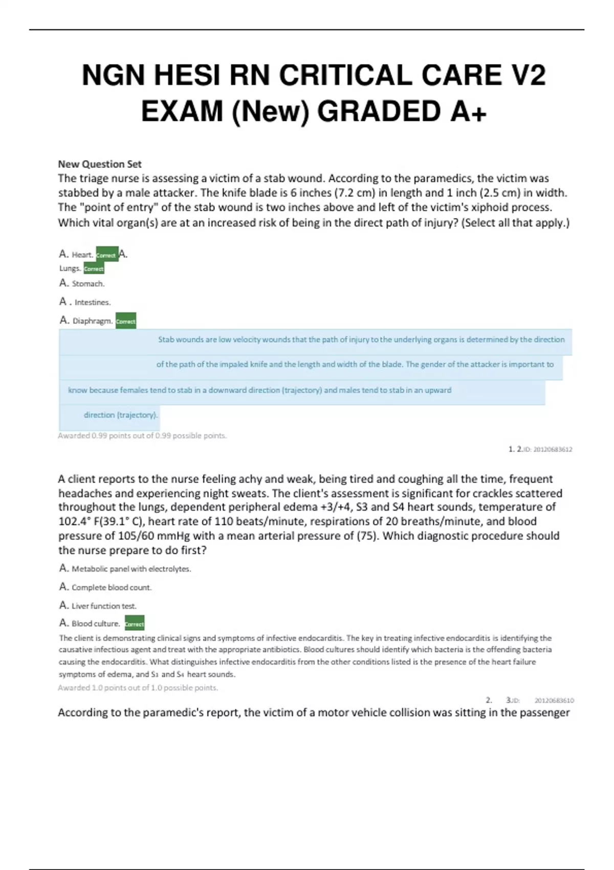 motor vehicle collision was on the client's left side of the body. Along with the physical assessment and vital signs findings the client is