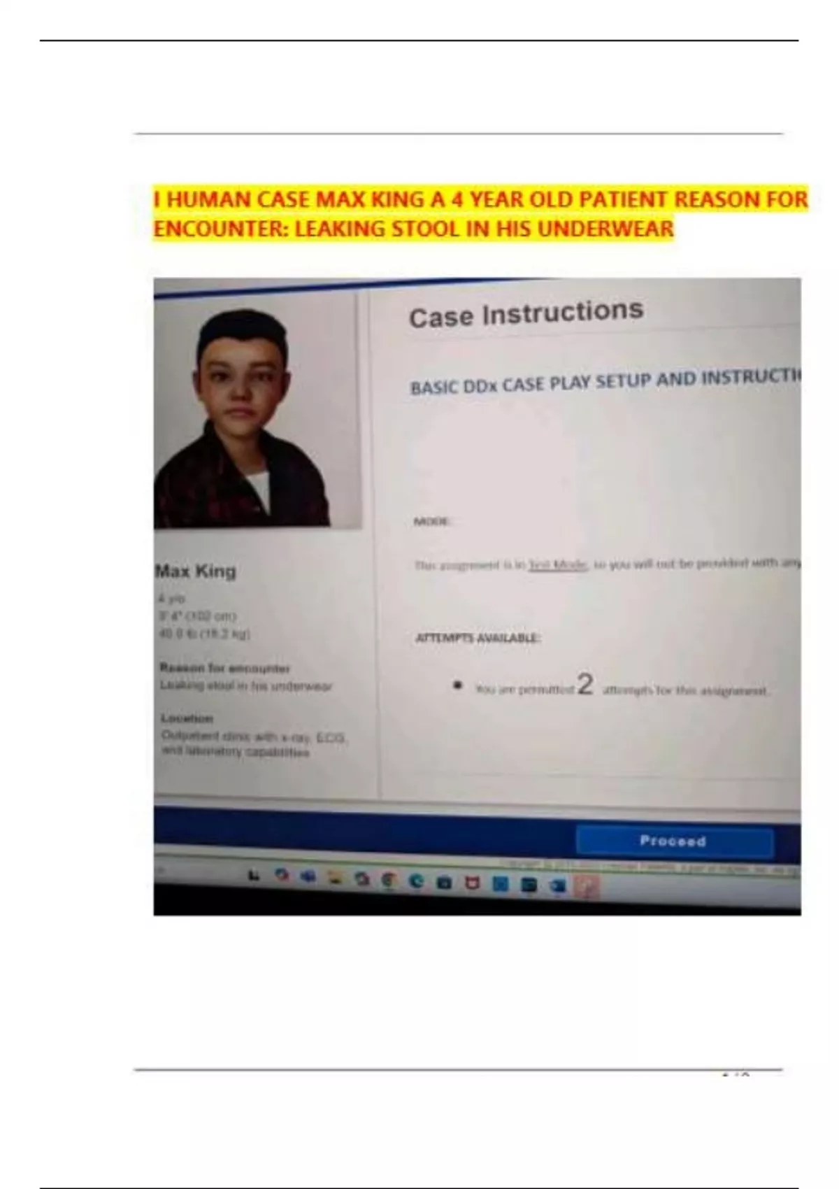 I HUMAN CASE MAX KING A 4 YEAR OLD PATIENT REASON FOR ENCOUNTER LEAKING STOOL IN HIS UNDERWEA