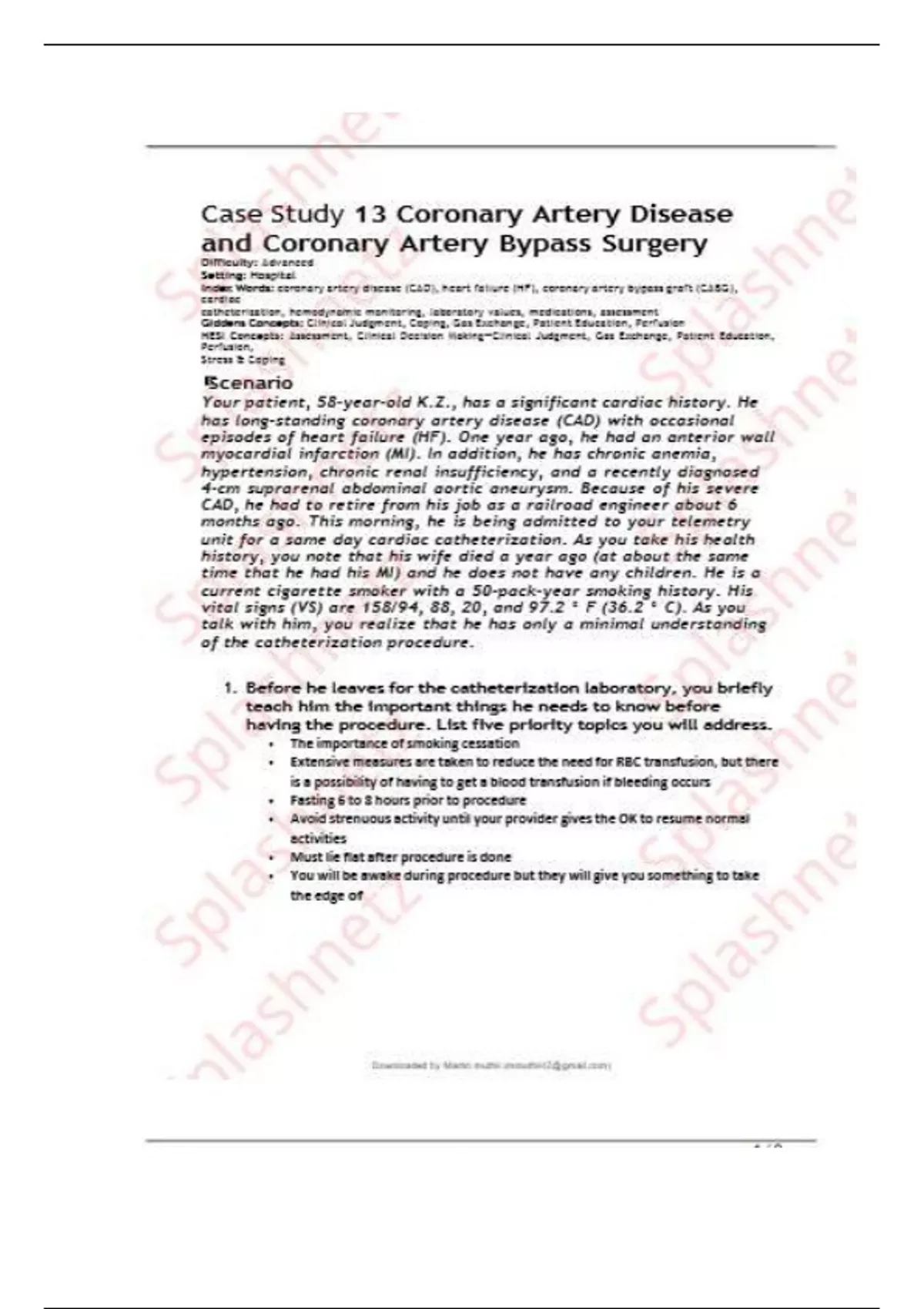 Case Study 13 Coronary Artery Disease and Coronary Artery Bypass Surgery