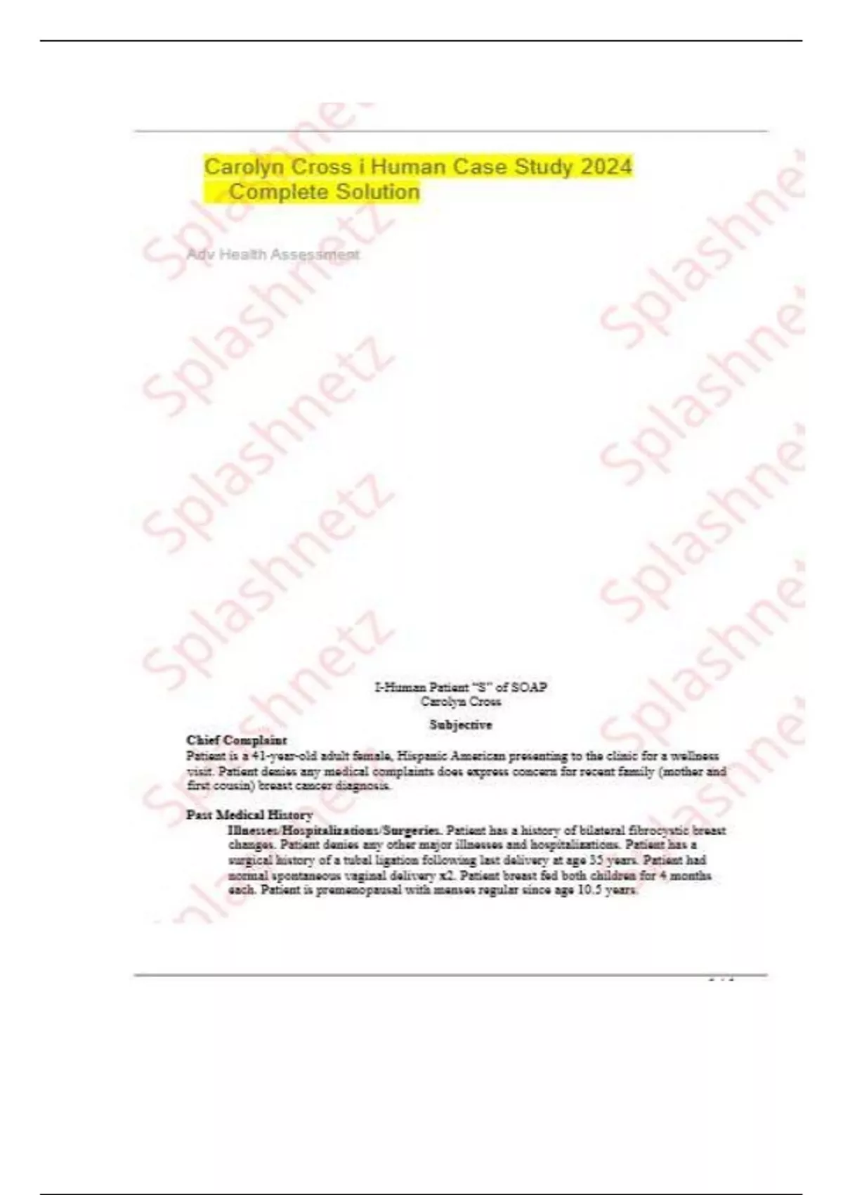 I Human Case Carolyn Cross 41 Year Old With Breast Cancer Cse Study 2024 Complete Solution