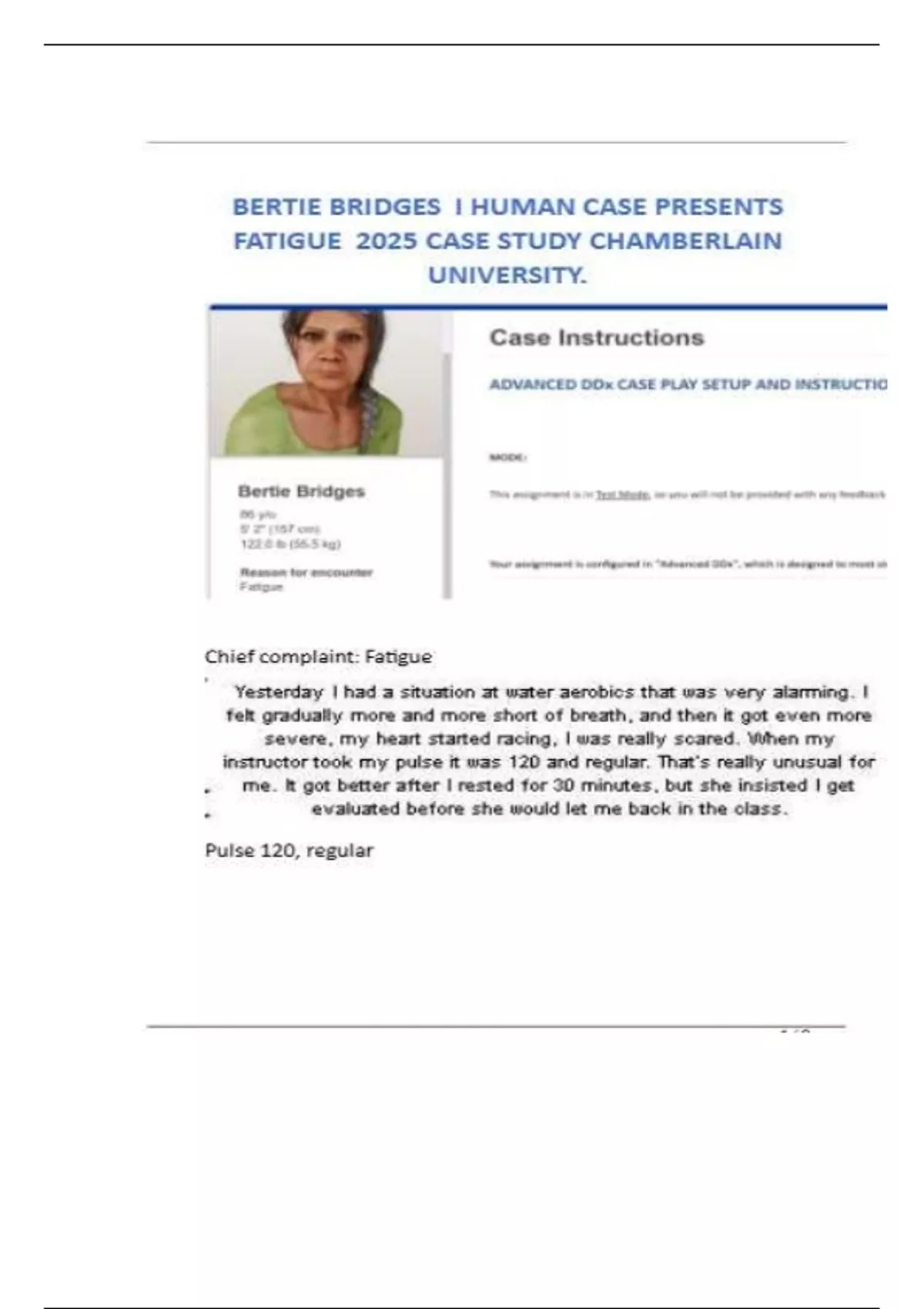 BERTIE BRIDGES I HUMAN CASE PRESENTS FATIGUE 2026 CASE STUDY CHAMBERLAIN UNIVERSITY.