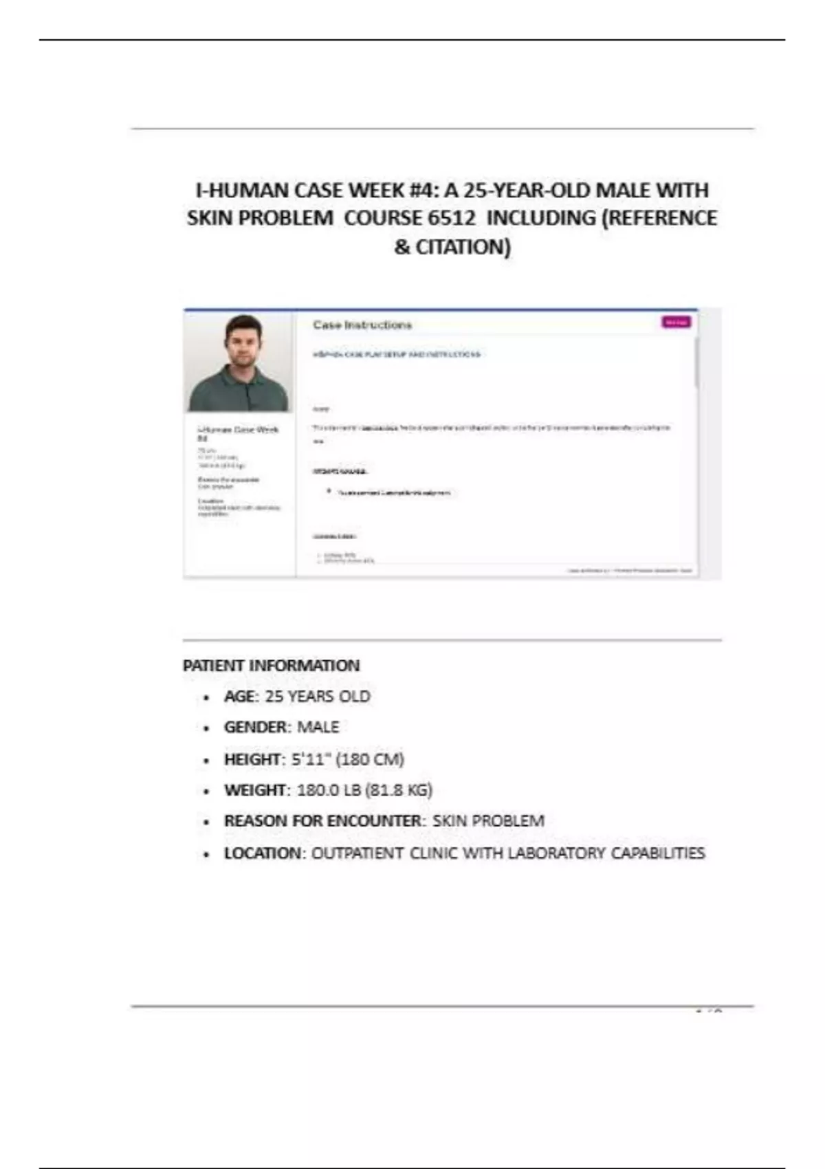 I-HUMAN CASE WEEK 4 A 25-YEAR-OLD MALE WITH SKIN PROBLEM COURSE 6512