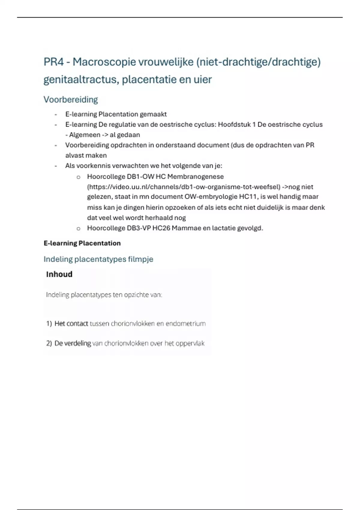 Voortplanting (VP) dgk jaar 3 practicum 4 placentatie, macroscopie, uteri en cyclus: uitwerking, antwoorden, aantekeningen, voorbereiding