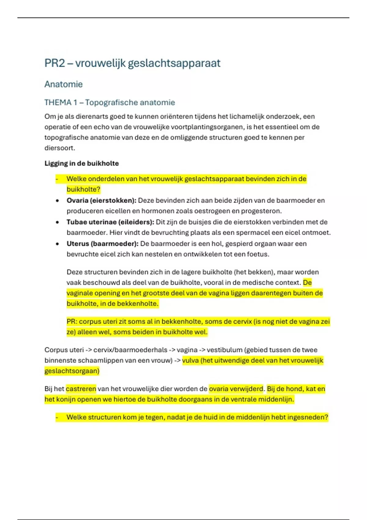 PR: corpus uteri zit soms al in bekkenholte, soms de cervix (is nog niet de vagina zei