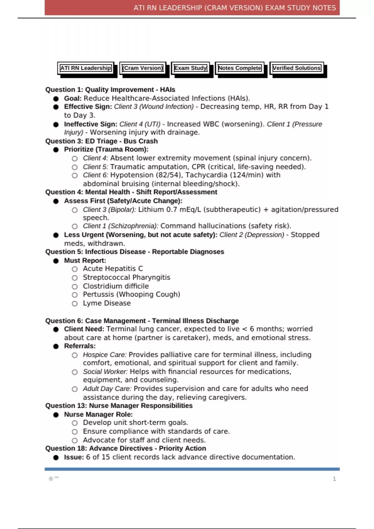 ATI RN Leadership (Cram Version) Exam Study Notes Complete Verified Solutions
