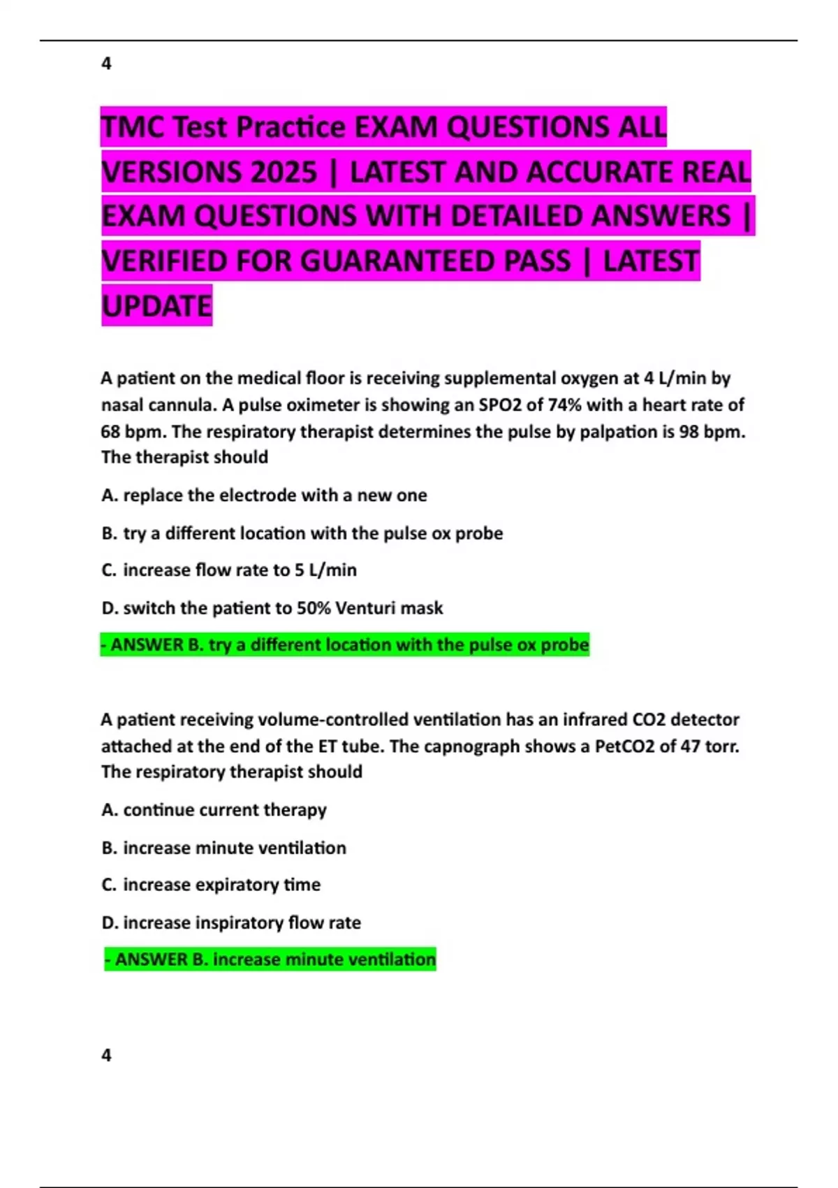 68 bpm. The respiratory therapist determines the pulse by palpation is 98 bpm.