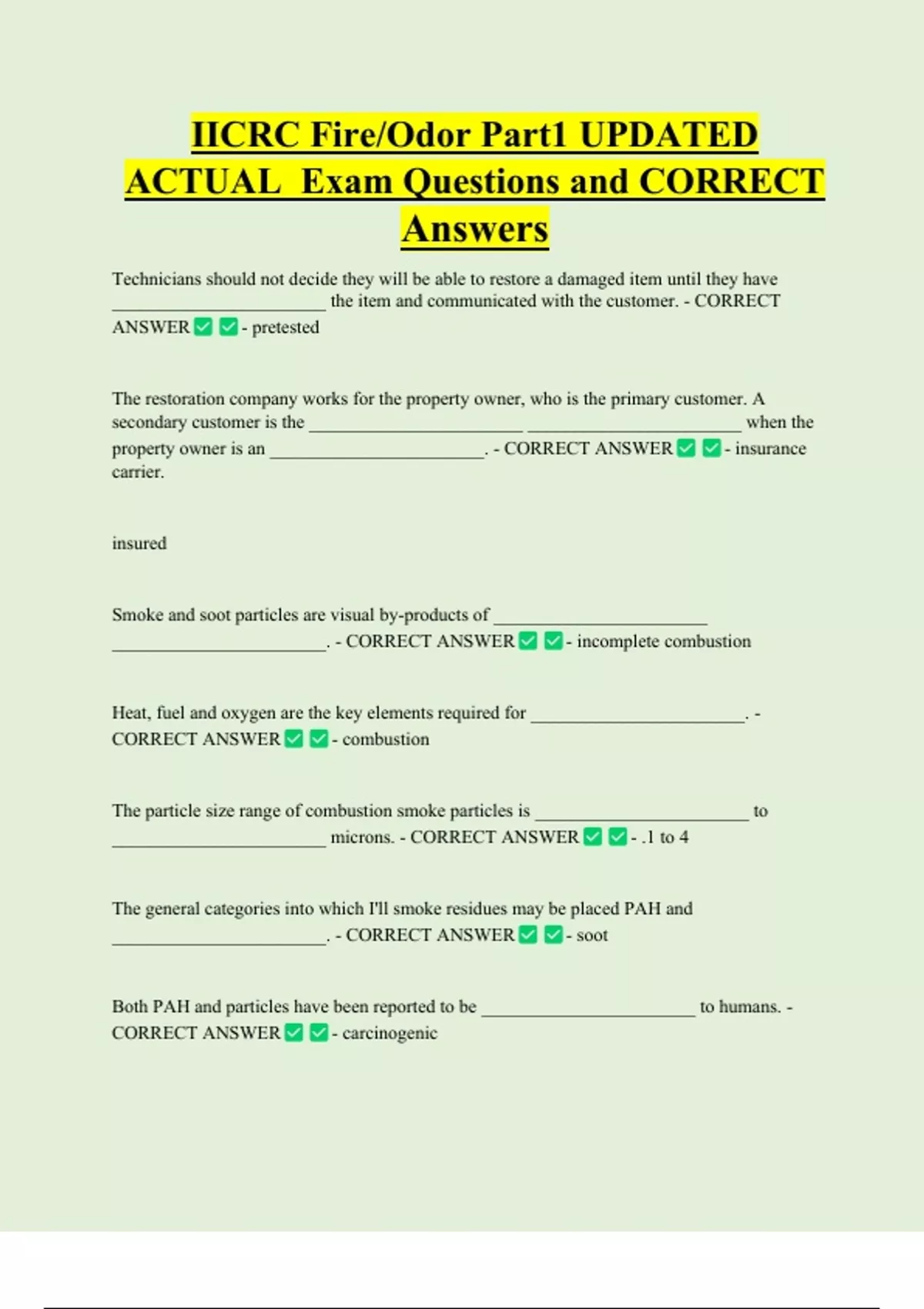 IICRC Fire/Odor Part1 UPDATED ACTUAL Exam Questions and CORRECT Answers