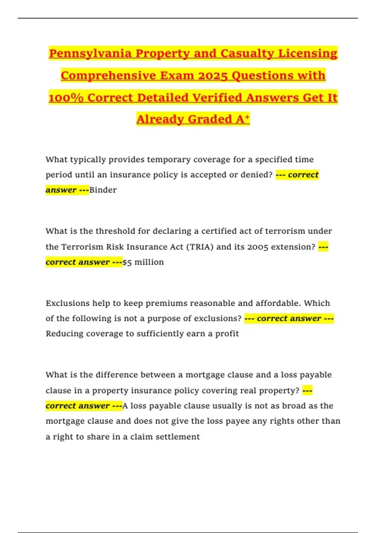 of the following is not a purpose of exclusions? --- correct answer ---