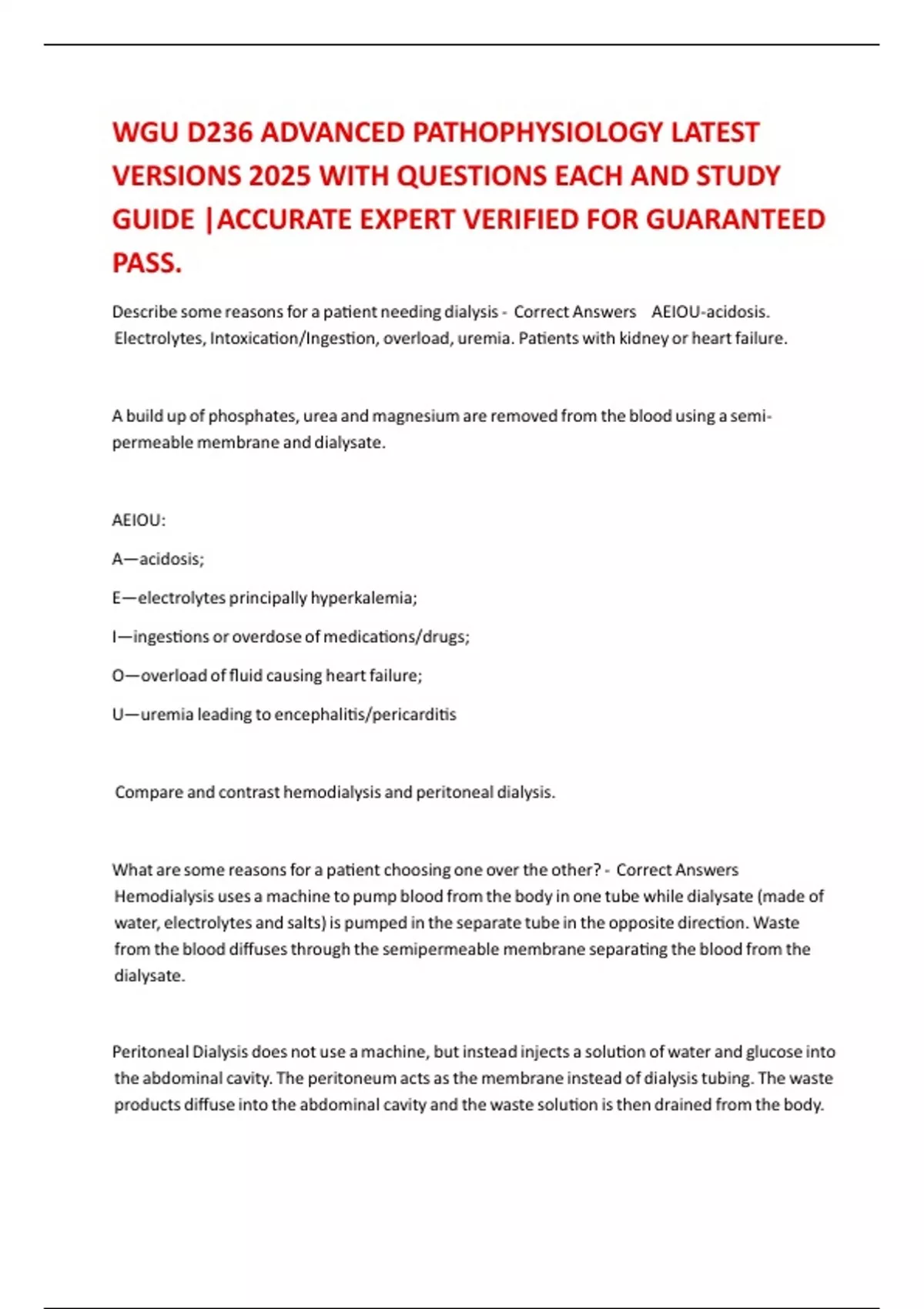Describe some reasons for a patient needing dialysis - Correct Answers AEIOU-acidosis.