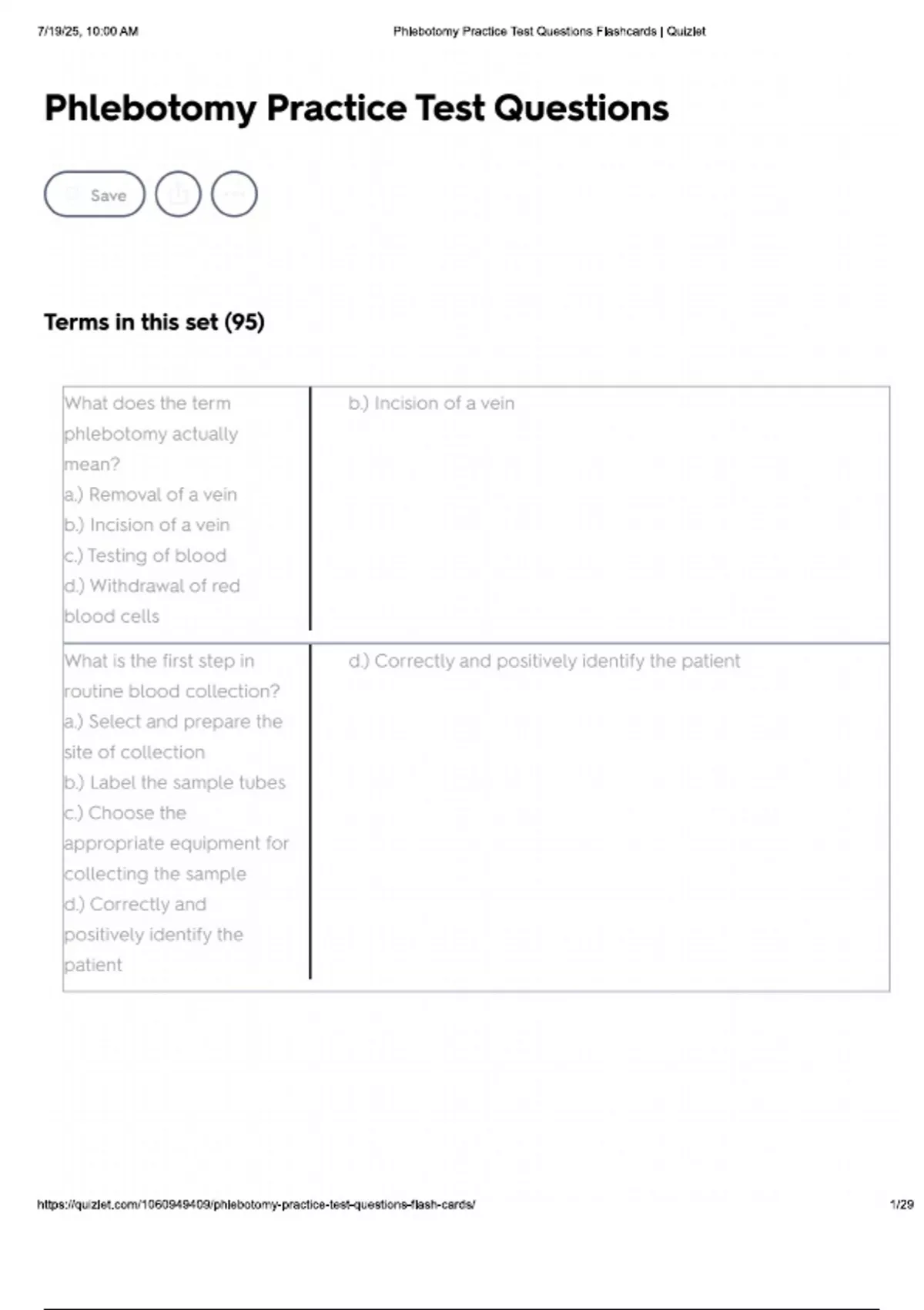 Phlebotomy Practice Test Questions with valid solutions 2025
