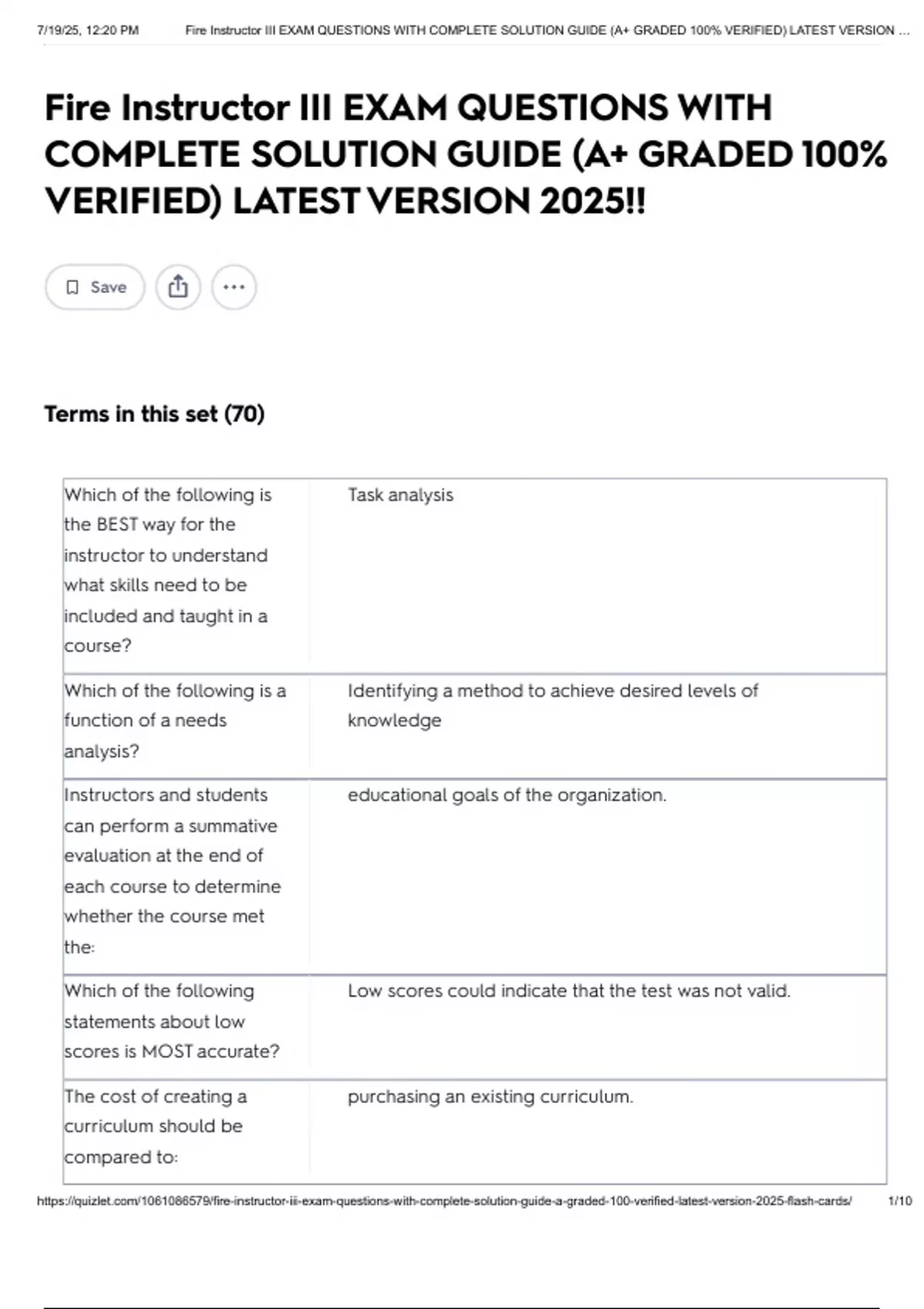 7/19/25, 12:20 PM Fire Instructor III EXAM QUESTIONS WITH COMPLETE SOLUTION GUIDE (A+ GRADED 100% VERIFIED) LATEST VERSION …