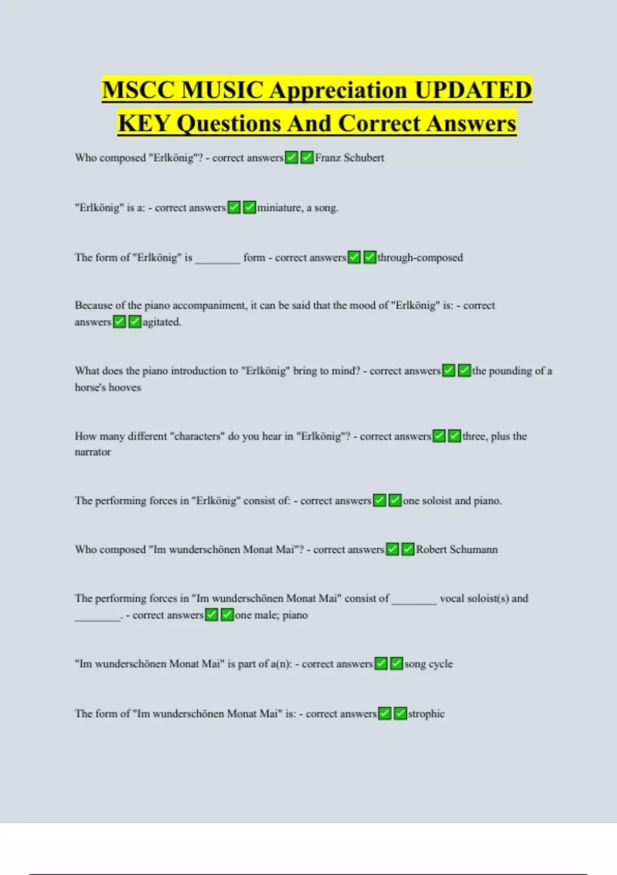 MSCC MUSIC Appreciation UPDATED KEY Questions And Correct Answers