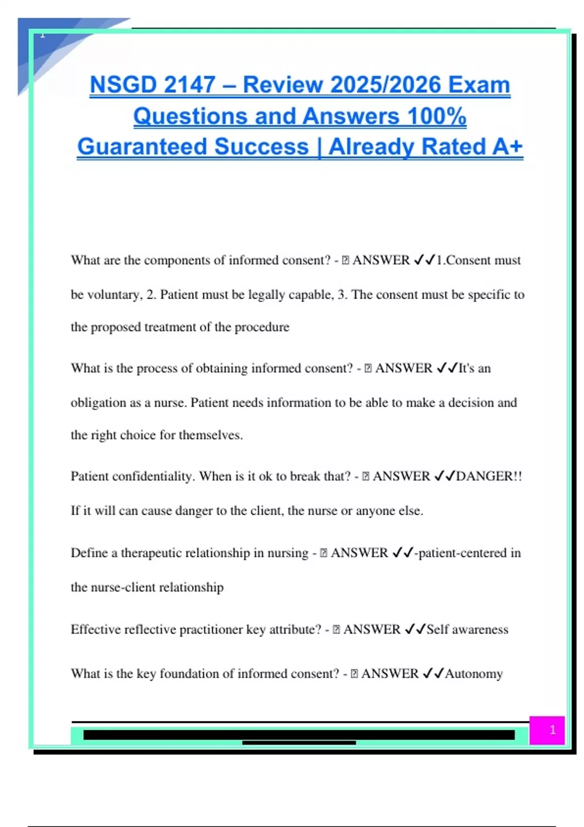 What are the components of informed consent? - 🧠 ANSWER ✔✔1.Consent must
