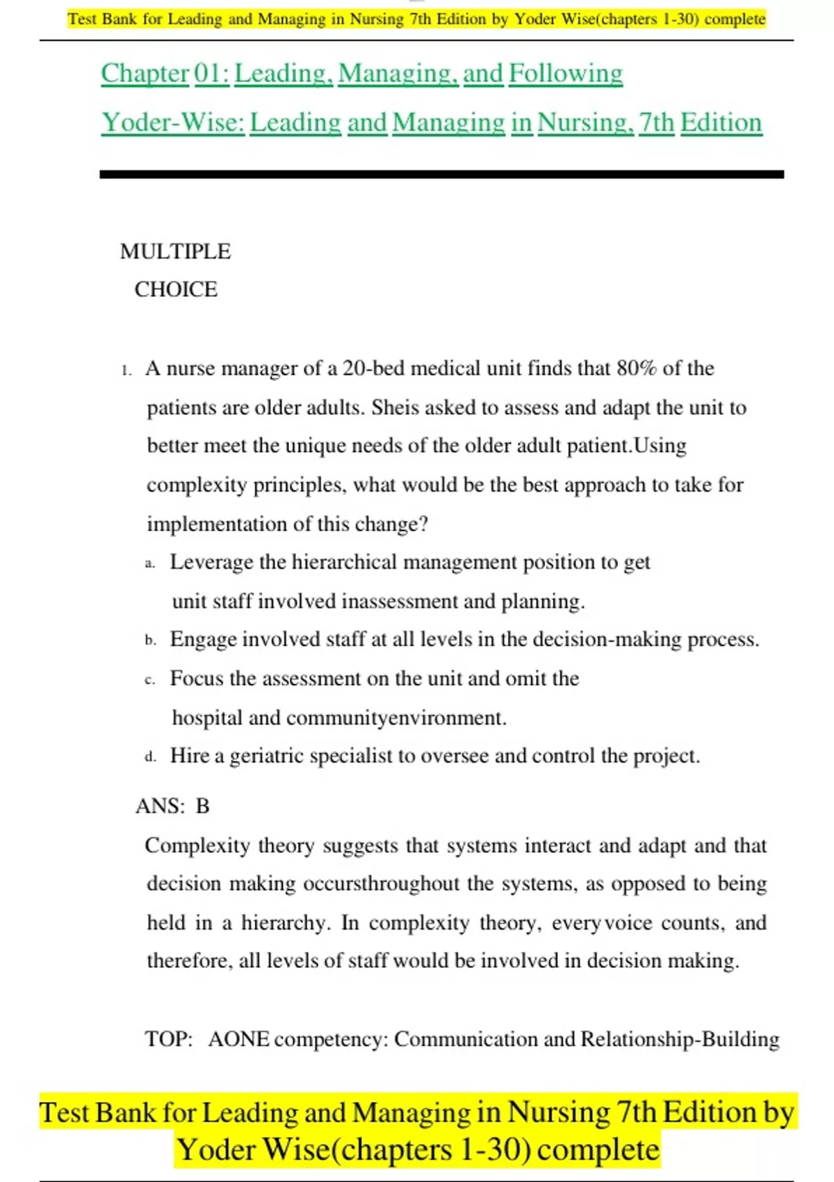 Test Bank Leading and Managing in Nursing 7th Edition by Patricia S. Yoder-Wise | Test Bank | Chapter 1-31 | Complete GuideTest Bank Leading and Managing in Nursing 7th Edition by Patricia S. Yoder-Wise | Test Bank | Chapter 1-31 | Complete GuideTest Bank Leading and Managing in Nursing 7th Edition by Patricia S. Yoder-Wise | Test Bank | Chapter 1-31 | Complete GuideTest Bank Leading and Managing in Nursing 7th Edition by Patricia S. Yoder-Wise | Test Bank | Chapter 1-31 | Complete GuideTest Bank Leading and Managing in Nursing 7th Edition by Patricia S. Yoder-Wise | Test Bank | Chapter 1-31 | Complete GuideTest Bank Leading and Managing in Nursing 7th Edition by Patricia S. Yoder-Wise | Test Bank | Chapter 1-31 | Complete GuideTest Bank Leading and Managing in Nursing 7th Edition by Patricia S. Yoder-Wise | Test Bank | Chapter 1-31 | Complete Guide