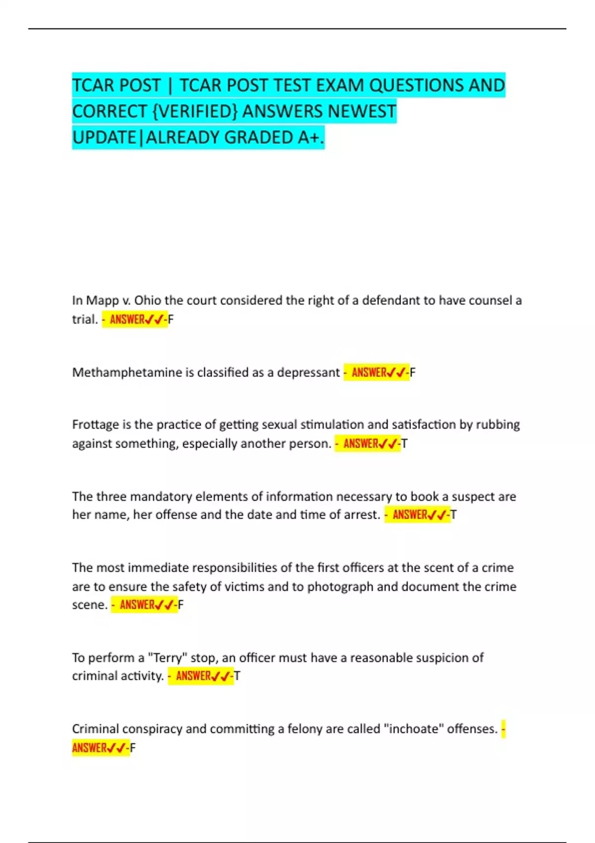 CORRECT {VERIFIED} ANSWERS NEWEST