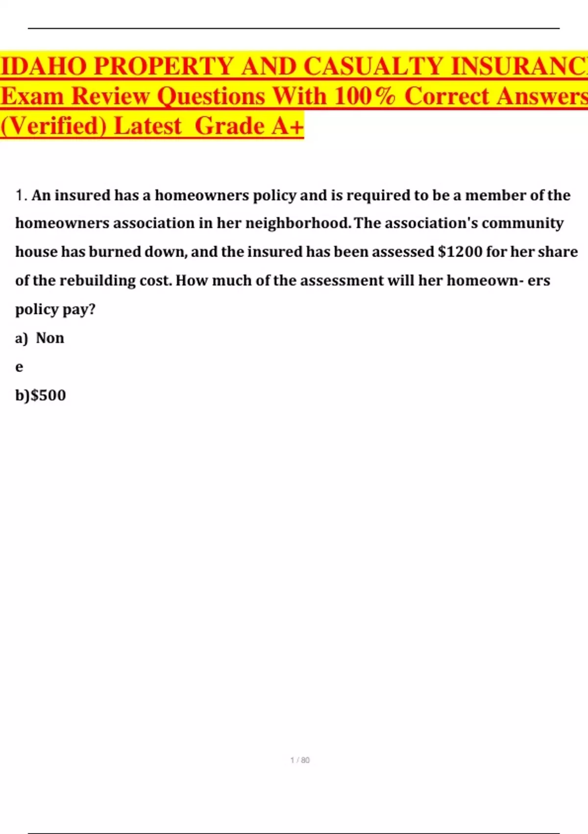 IDAHO PROPERTY AND CASUALTY INSURANCE Exam Review Questions With 100- Correct Answers