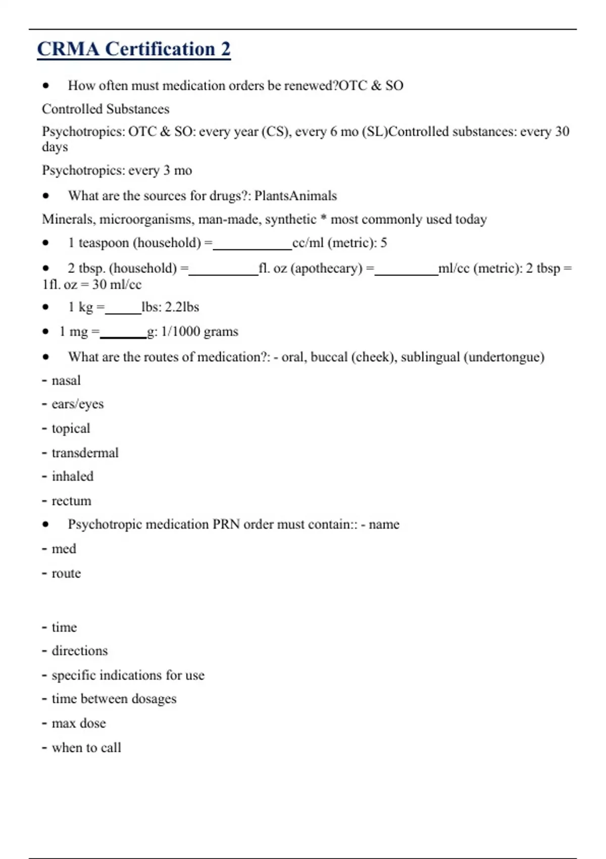 • Psychotropic medication PRN order must contain:: - name