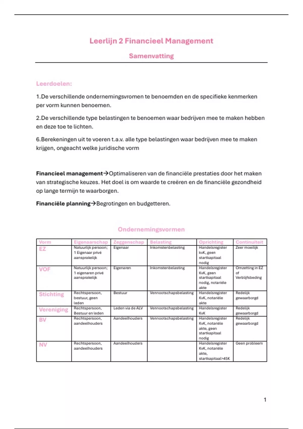 1.De verschillende ondernemingsvromen te benoemden en de specifieke kenmerken
