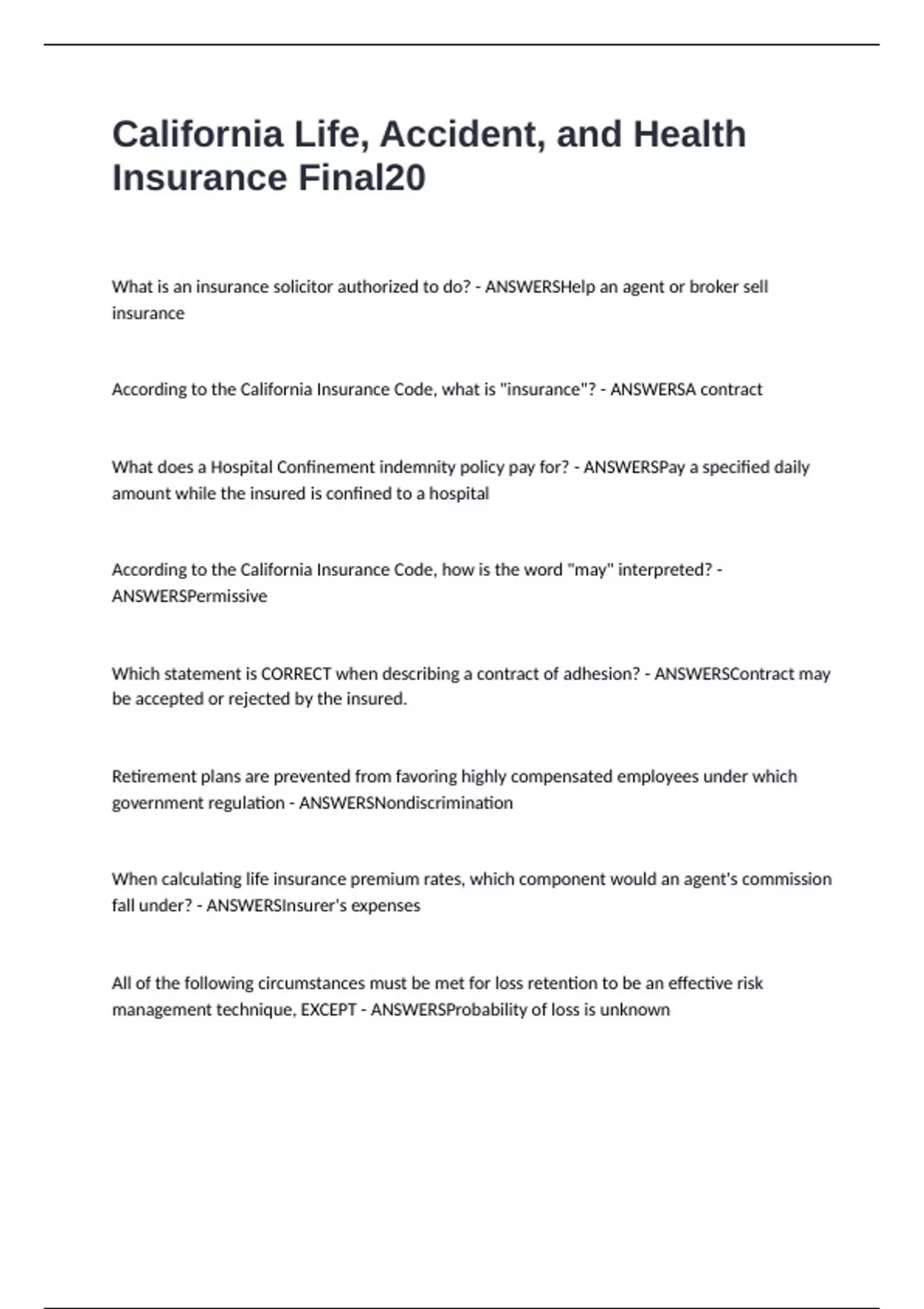 According to the California Insurance Code, what is "insurance"? - ANSWERSA contract
