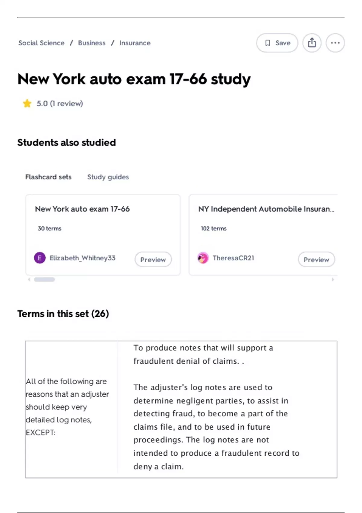 Flashcard sets Study guides