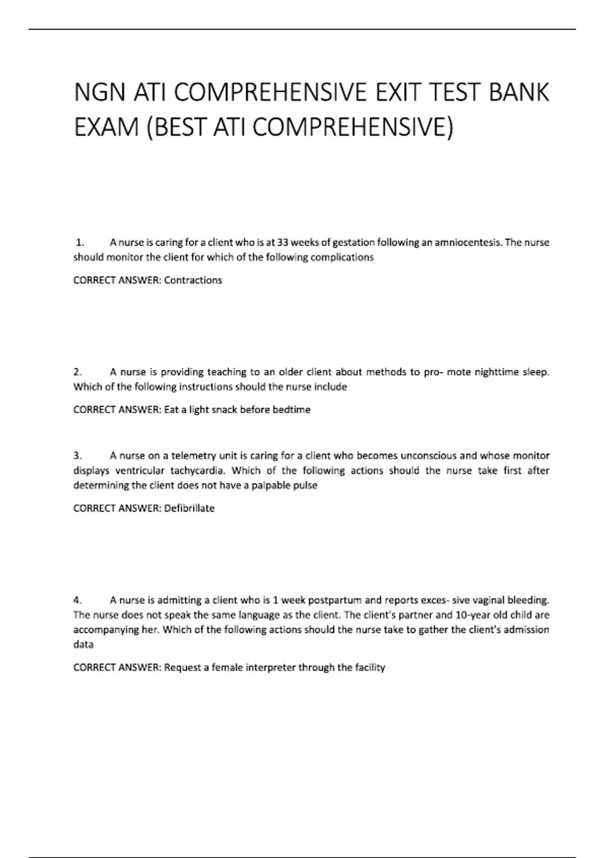 NGN ATI COMPREHENSIVE EXIT TEST BANK EXAM (BEST ATI COMPREHENSIVE)