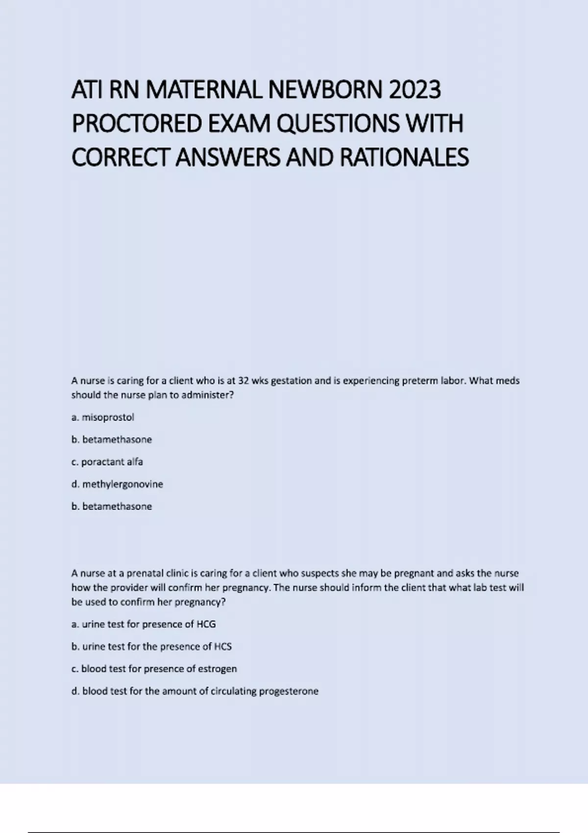 ATI RN MATERNAL NEWBORN 2023 PROCTORED EXAM QUESTIONS WITH CORRECT ANSWERS AND