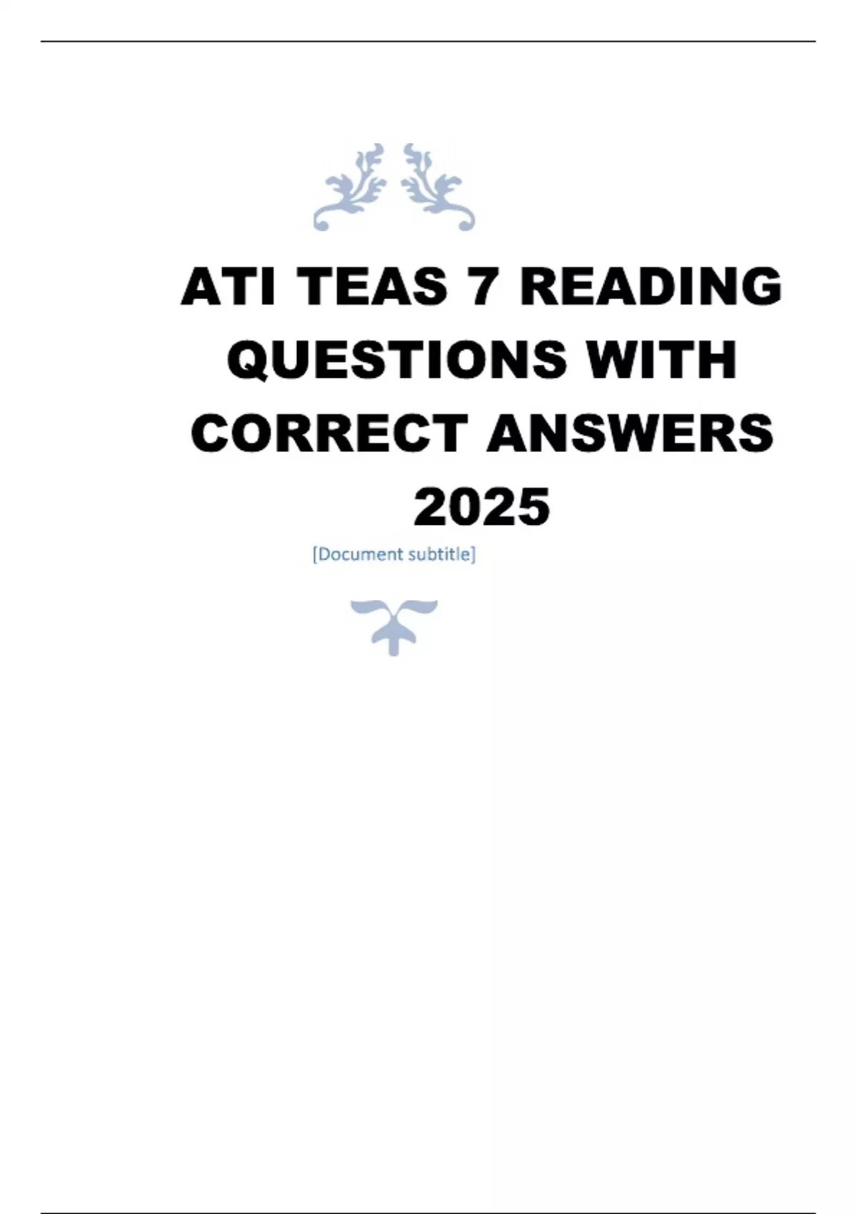 ATI TEAS 7 READING QUESTIONS WITH CORRECT ANSWERS 2025