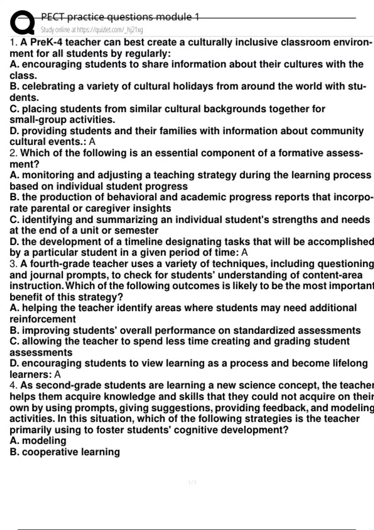 1. A PreK-4 teacher can best create a culturally inclusive classroom environ-
