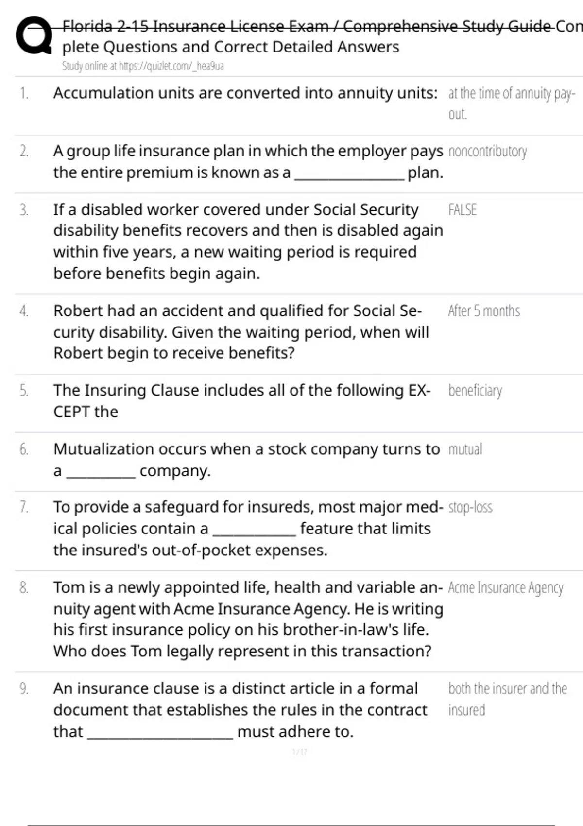 9. An insurance clause is a distinct article in a formal both the insurer and the