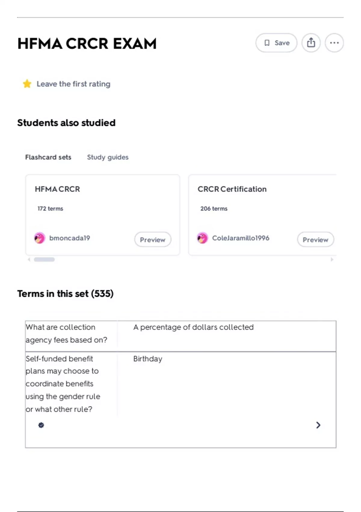 Flashcard sets Study guides