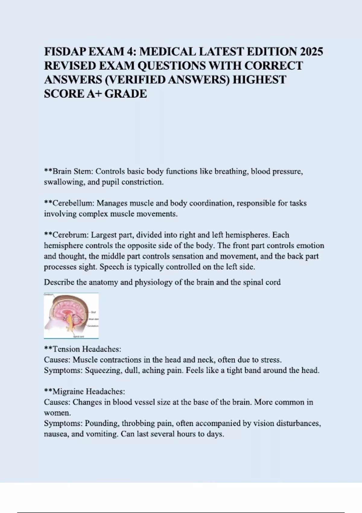 FISDAP EXAM 4 MEDICAL LATEST EDITION 2025 REVISED EXAM QUESTIONS WITH CORRECT ANSWERS