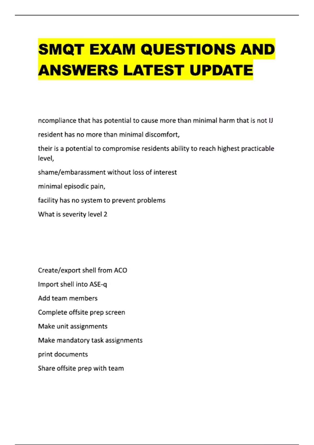 SMQT EXAM QUESTIONS AND ANSWERS LATEST UPDATE