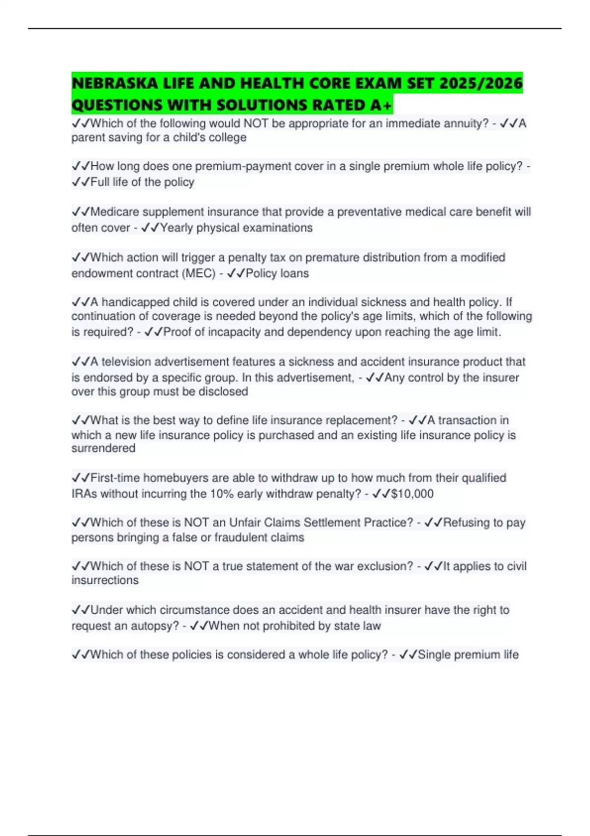 ✔✔Which of these policies is considered a whole life policy? - ✔✔Single premium life