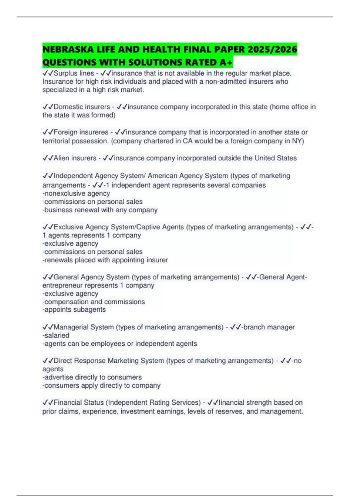 NEBRASKA LIFE AND HEALTH FINAL PAPER 2025/2026
