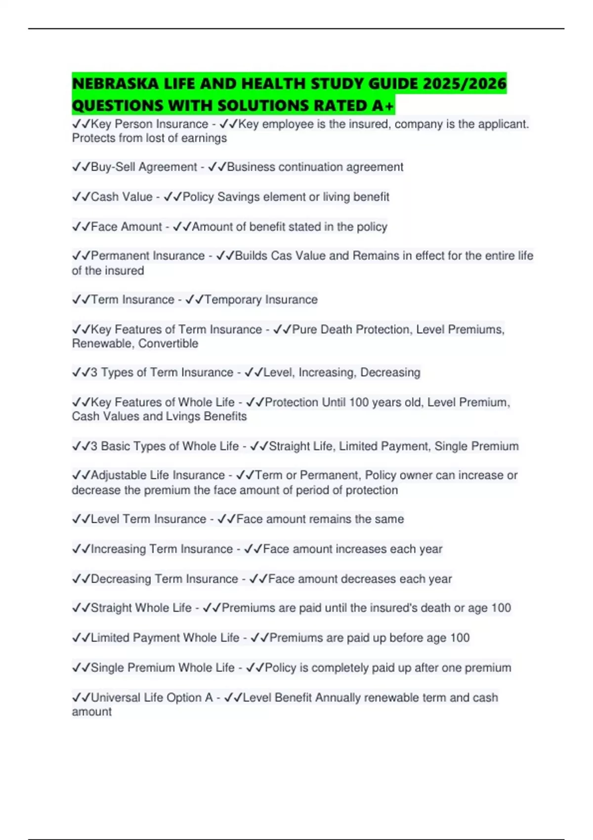 NEBRASKA LIFE AND HEALTH STUDY GUIDE 2025/2026 QUESTIONS WITH SOLUTIONS RATED A+