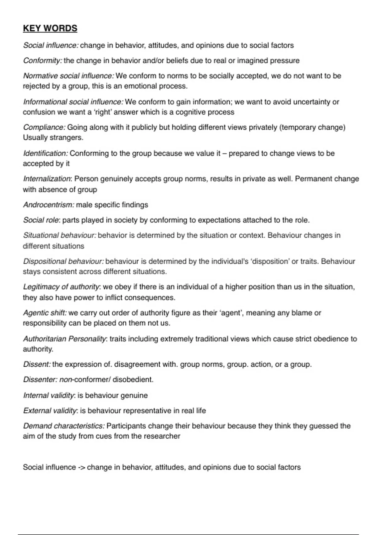 Provides in depth information to social influence topic from a consistent A* student to give a detailed understanding of what you are required to know from the spec and to achieve great grades