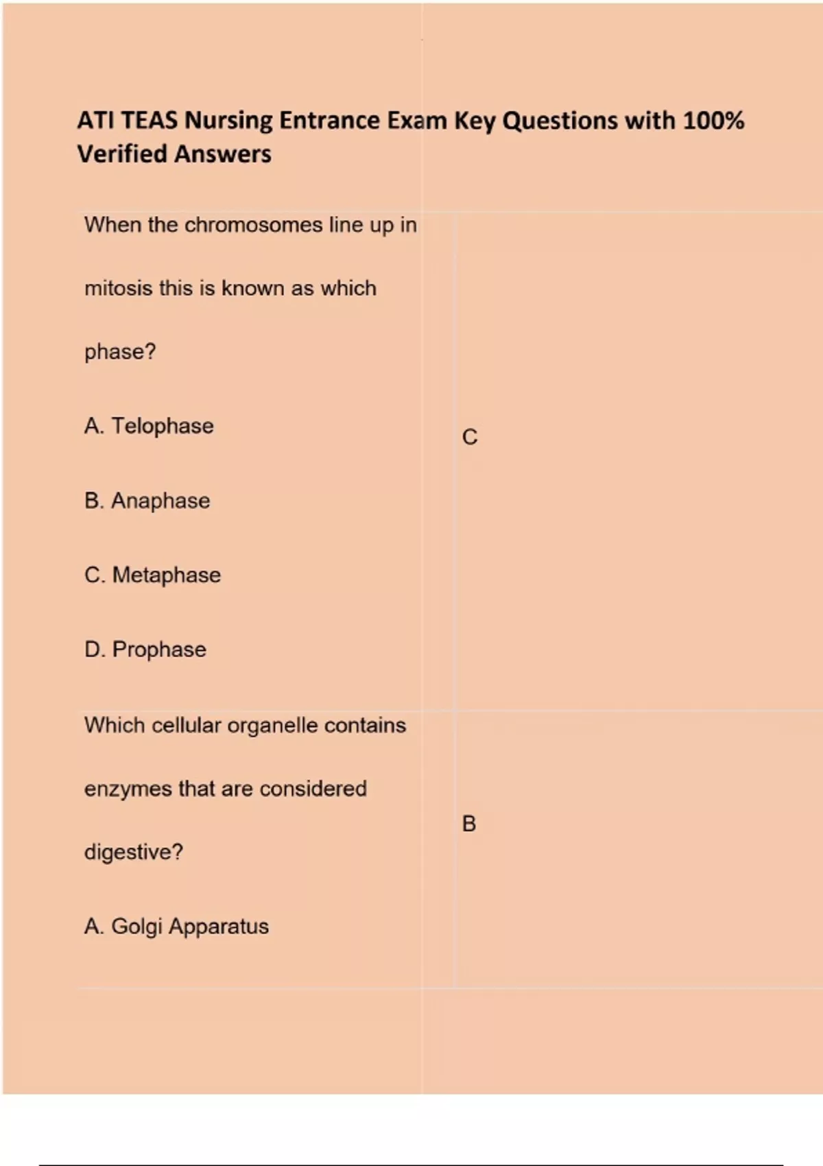 ATI TEAS Nursing Entrance Exam Key Questions with 100% Verified Answers