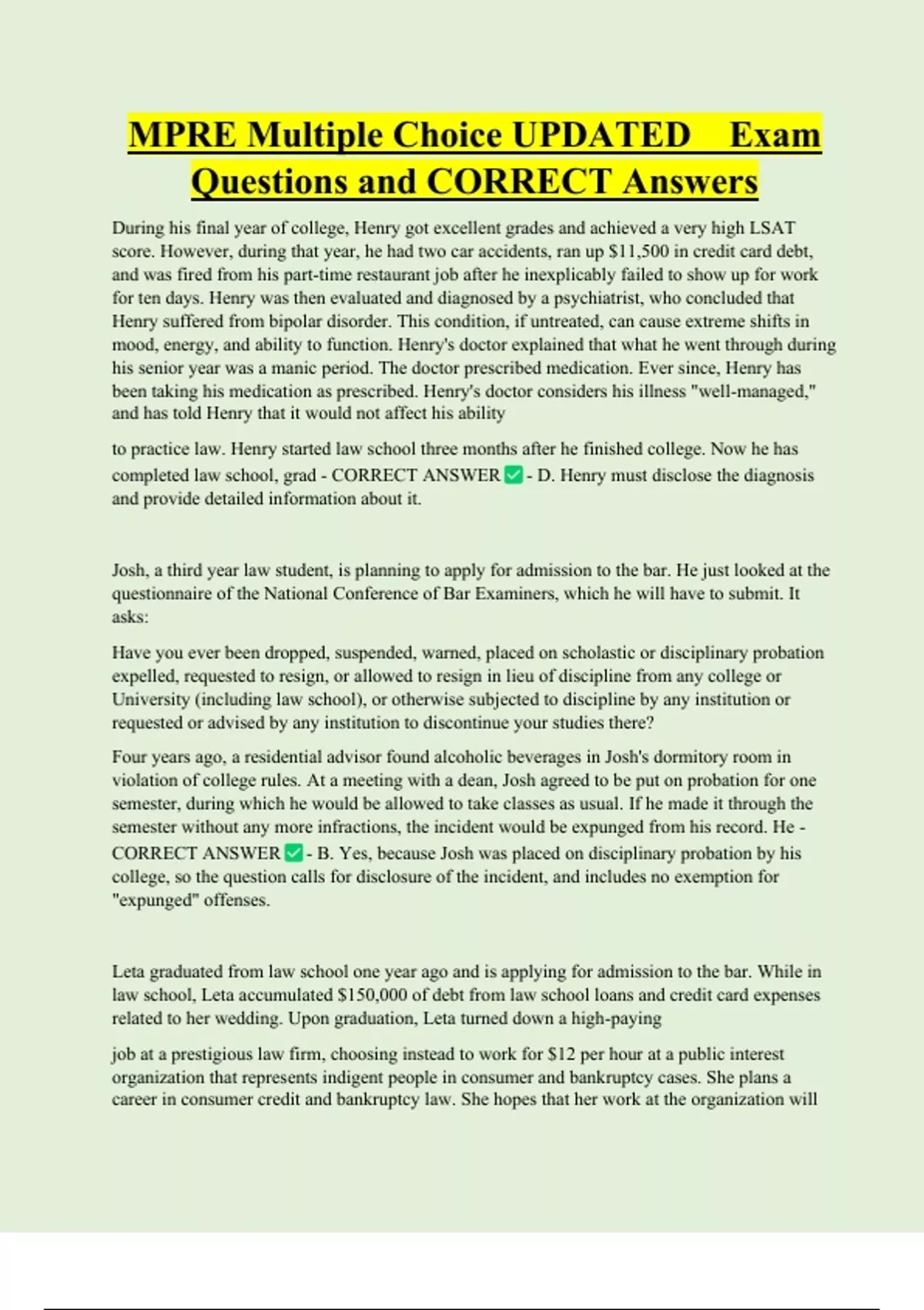 Josh, a third year law student, is planning to apply for admission to the bar. He just looked at the