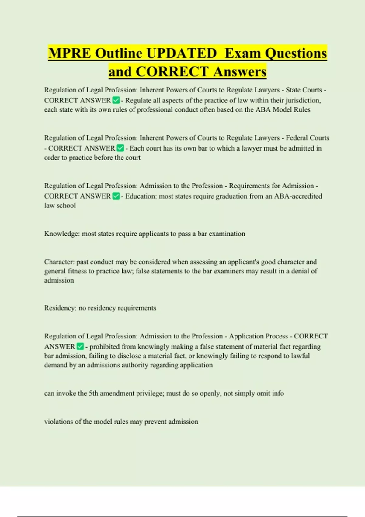 Regulation of Legal Profession: Admission to the Profession - Application Process - CORRECT