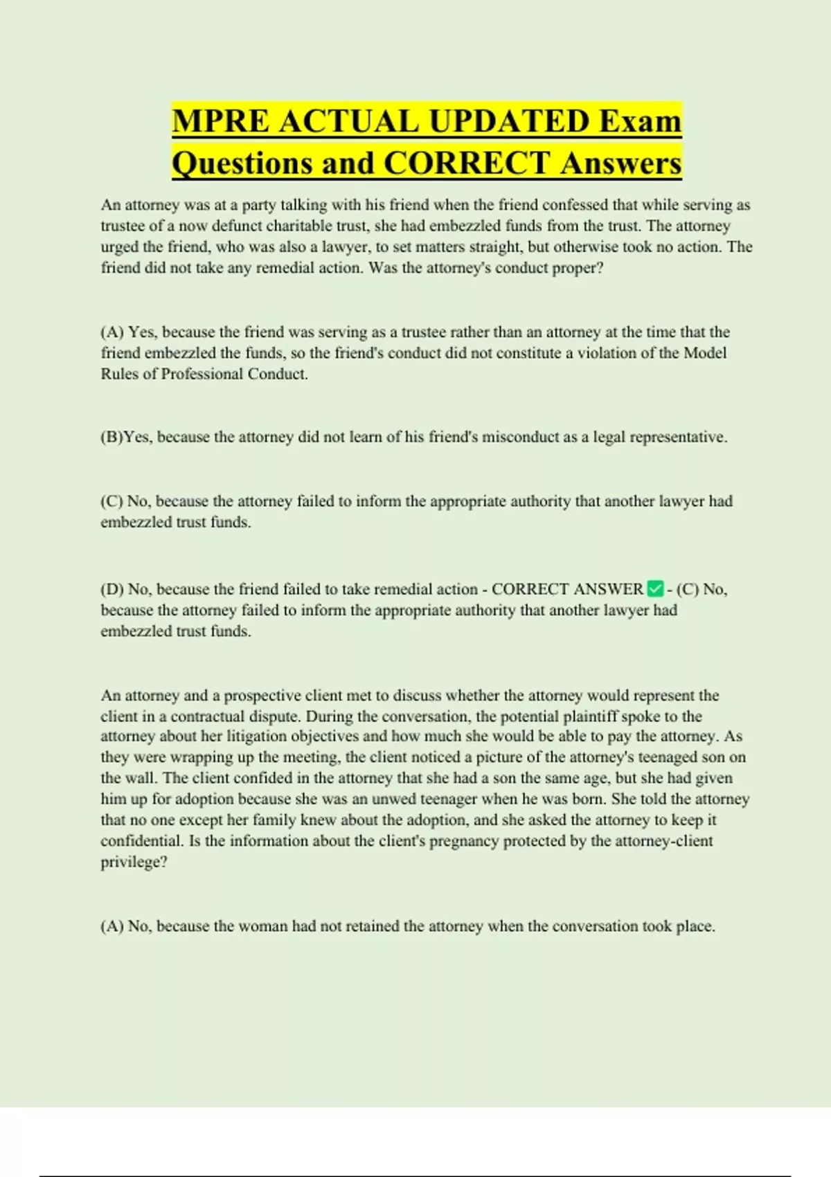 (D) The attorney must have provided - CORRECT ANSWER - (B) The attorney must have