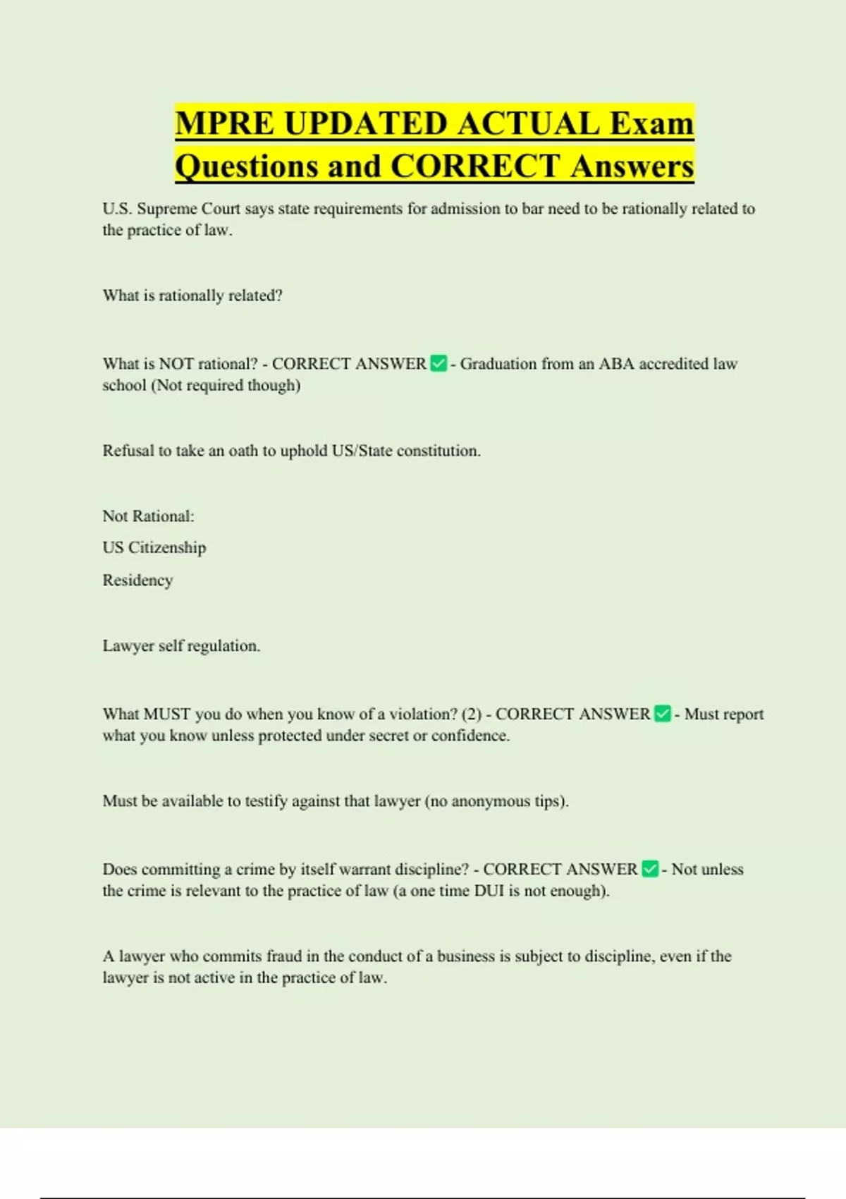 MPRE UPDATED ACTUAL Exam Questions and CORRECT Answers