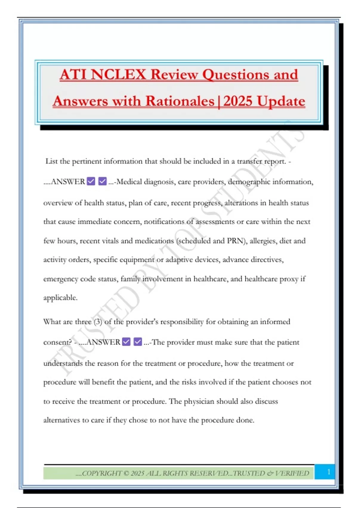 ATI NCLEX Review Questions and Answers with Rationales|2025 Update